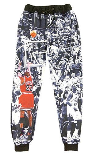 Unisex Emoji Sweatpants Joggers Pants 3D Star Basketball Jogging (Black,Large)