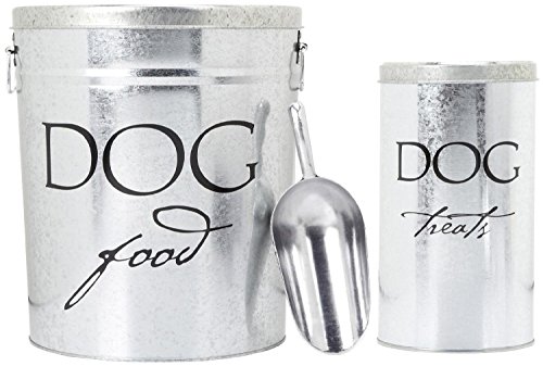 3-Piece Galvanized Steel Dog Food Container Set - Small (10 lbs)