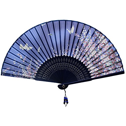 Nestarfactory Flower Butterfly Designs Handheld Folding Fan with Exclusive Gift (Blue)