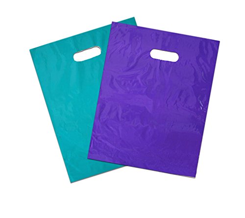 100 12x15 Glossy Purple and Teal Plastic Merchandise Bags w/die cut handles
