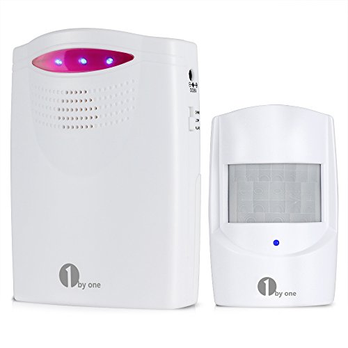 1byone Wireless Home Security Driveway Alarm, 1 Battery-Operated Receiver and 1 PIR Motion Sensor Detector Weatherproof Patrol Infrared Alert System Kit