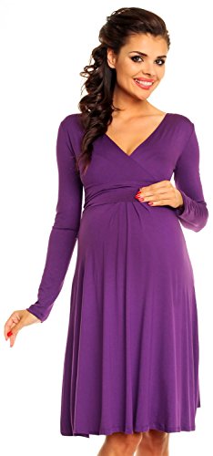 Zeta Ville - Womens Maternity Stretch Dress Empire Waist - Long Sleeves - 890c (Purple, US 12, XL)