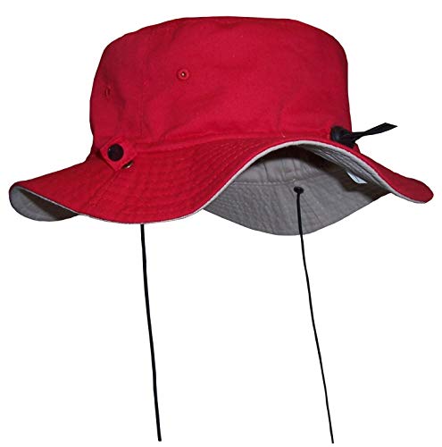N'Ice Caps Unisex Kids Reversible and Adjustable Cotton Twill Aussie Hat (54cm(21.25") 3-4yrs, red/Khaki)