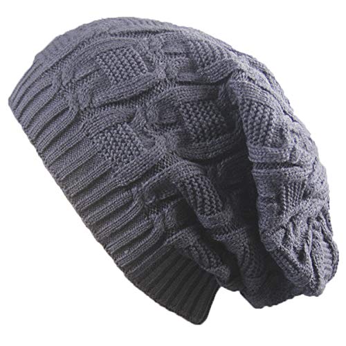 Ls Lady Thick Slouchy Knit Oversized Beanie Cap Hat Winter Warmming Cap Grey