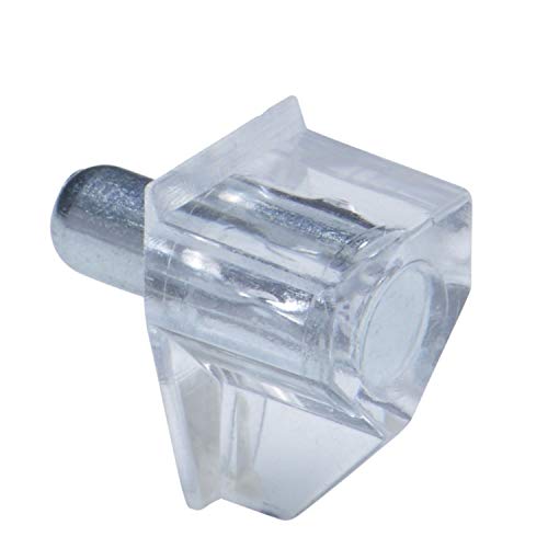 5mm Bracket Style Cabinet Shelf Support Pegs - Clear Plastic w/Steel Pin - 25 Pack