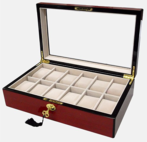 Sodynee Elegant Color 12-Compartment Wood Display Case Box with Lock and Key, Ebony?