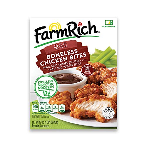 Farm Rich Boneless Chicken Bites, Barbecue Style Boneless Chicken Wings, White Meat Fritters, Frozen, 17 Ounces