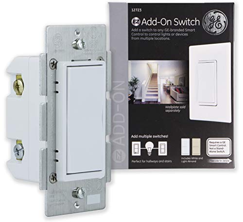 GE Add-On Switch for GE Z-Wave, GE ZigBee and GE Bluetooth Wireless Smart Lighting Controls, NOT A STANDALONE SWITCH, Includes White & Light Almond Paddles, 12723