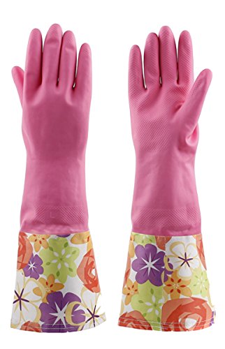 Sealike Floral Antiskid Dishwashing Gloves Cleaning Gloves Household Gloves Water Stop Waterstop Gloves with Stylus Red