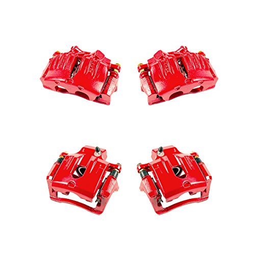CK01095 FRONT + REAR [ 4 ] Performance Grade Semi-Loaded Powder Coated Red Caliper Assembly Set Kit