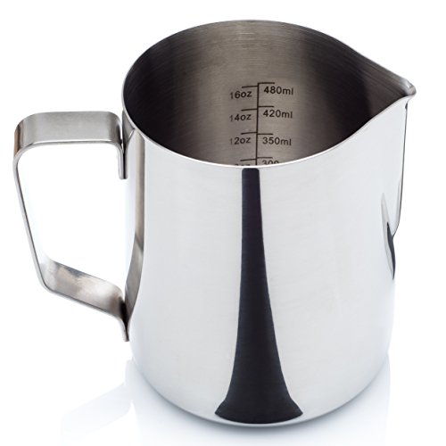 Stainless Steel Milk Frothing Pitcher (20 oz.) with Measurement Markings and Bonus Storage Bag - for Espresso Maker, Hot Milk Frother and Cappuccino Maker