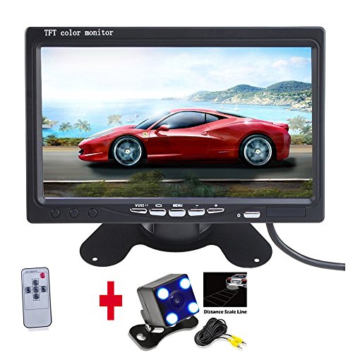 LEAGY 7" TFT LCD Color 2 Video Input Car Rear View Headrest Monitor DVD VCR Monitor with Remote Rotating the Screen. HD LED Night Vision Car Rear View Reverse Backup Parking Waterproof CCD Camera