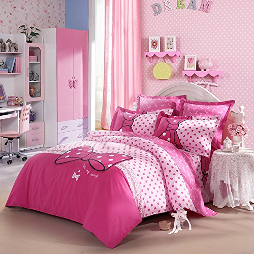 LOVO Luxury Dream Bowknot 100% Cotton 300TC 4-Piece Bedding Set 1x Duvet Cover 1x Fitted Sheet 2x pillowcases Pink Full