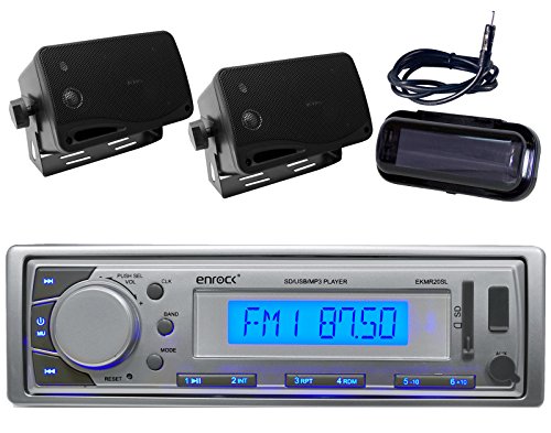 Enrock 20S-B1-3 Marine Audio Outdoor Boat/Car ATV AM/FM Receiver MP3 USB Aux Stereo-Pair Speakers (Black/Silver)