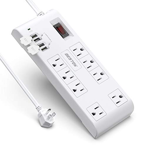 BESTEK 8-Outlet Surge Protector Power Strip with 4 USB Charging Ports and 6-Foot Heavy Duty Extension Cord, 600 Joules, FCC ETL Listed, White