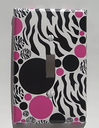 Zebra Print Dots Light Switch Plate Cover / Animal Print Wall Decor with Zebra Print, Hot Pink and Black Dots