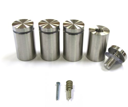 1" Dia. x 1-1/2" L. Solid Stainless Steel Sign Standoffs, SET OF 4, Satin Brushed Finish; Architectural Quality; Project your pictures, graphics and other signage out from wall.