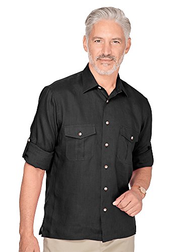 Paul Fredrick Men's Linen Straight Collar Casual Shirt Black XL