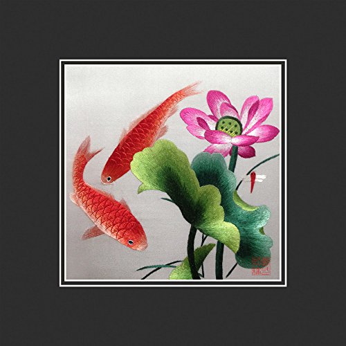 King Silk Art 100% Handmade Embroidery Multiple Unframed Japanese Koi & Lotus Water Lily Oriental Wall Hanging Art Asian Decoration Tapestry Artwork Picture Gifts 32010DB