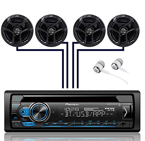Pioneer DEH-S4100BT Single DIN Bluetooth InDash CD USB MP3 AUX AM/FM MIXTRAX Pandora Spotify Android Car Stereo Receiver with 2 Pairs JVC 6.5" 300W 2-Way Coaxial Car Speakers/Free ALPHASONIK Earbuds