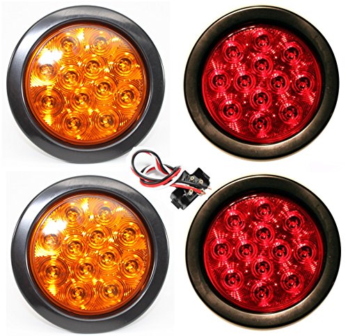 NEW Sparkling 2 Red + 2 Amber Round 4" LED Lights Stop Brake Turn Tail Signal for Truck Trailer RV