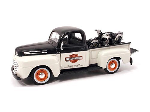 1948 Ford F-1 Pickup Truck Harley Davidson With 1948 FL Panhead Motorcycle Black/White 1/24