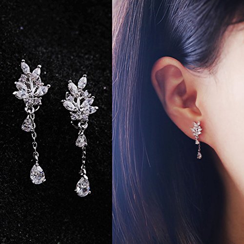 CIShop Prince Diamond Earrings 925 Sterling Silver Post with Drop Pendent Back