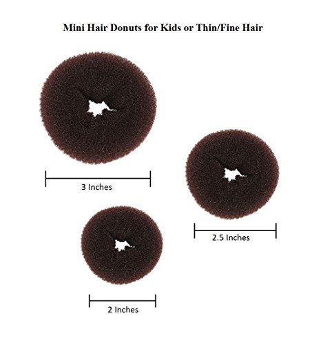 Beaute Galleria 3 Pieces Mini Kids Hair Donut Bun Maker Ring Style Mesh Chignon Ballet Sock Bun (Brown)