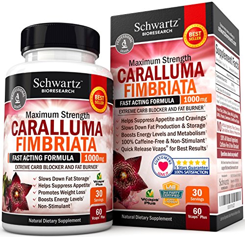 Appetite Suppressant Pure Caralluma Fimbriata Extract 1000mg All Natural Weight Loss Pills to get Slim Fast - Extreme Carb Blocker and Fat Burner to Lose Weight Easily (60 Capsules) Made in USA