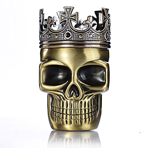 Golden Bell Herb Spice Grinder Crown Skull - Bronze
