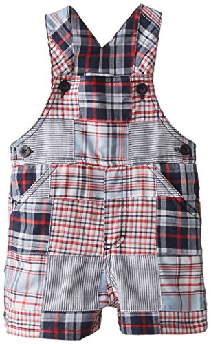 Kitestrings Baby Boys' Cotton Patchwork Plaid Shortall, Red/Blue Patchwork, 18 Months