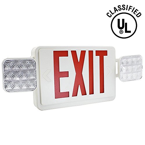TORCHSTAR ALL LED Dual/Single Face Combo EXIT Sign and Emergency Light - Red Letter w/ Dual Square Head Lights and Rechargeable Battery Backup – US Standard Double Face Lighted EXIT Sign EL06