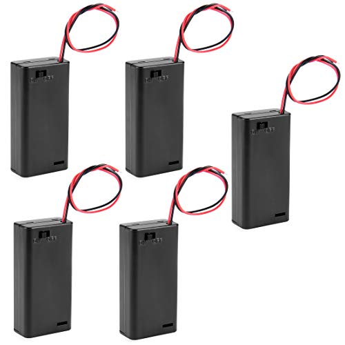 uxcell 5 Pcs Battery Box Holder w Cap On/Off Switch 2x1.5V AA Batteries