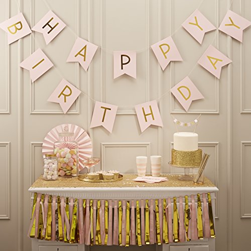 Ginger Ray Pastel Perfection and Gold Foiled Happy Birthday Bunting Banner, Pink