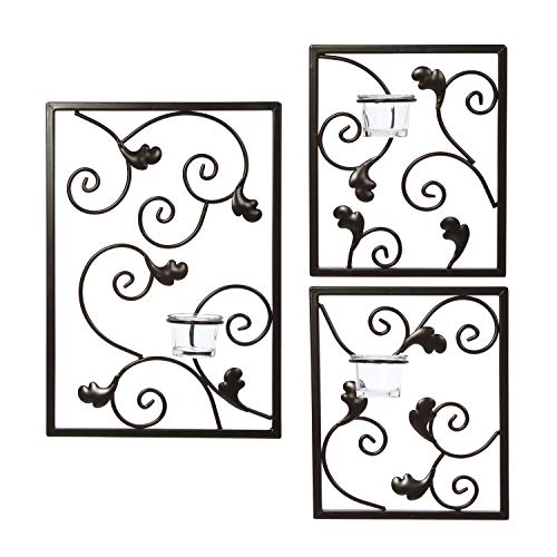 Hosley Set of 3 Wall Sconce Iron Tealight Set 1 Large 15 Inches High and 2 Small 8 Inches High Modern Wall Art Plaque for Your Home Spa LED Aromatherapy or as a Gift O4