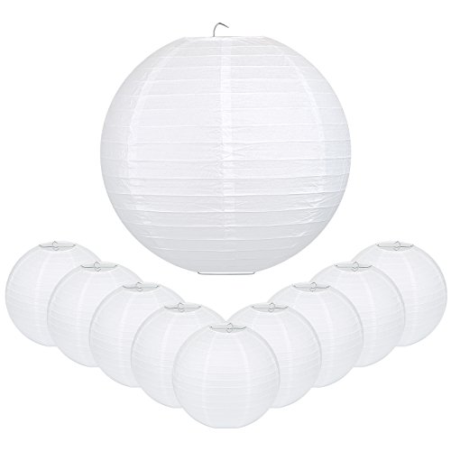 LIHAO 16 Inch White Round Paper Lanterns (10 Pack)