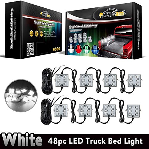 Partsam LED Truck Bed Light Strips 8pods 6-5050-smd White LED Rear Work Box Lighting Kit Waterproof LED Bed Light for Truck Pickup Cargo Trailer RVs