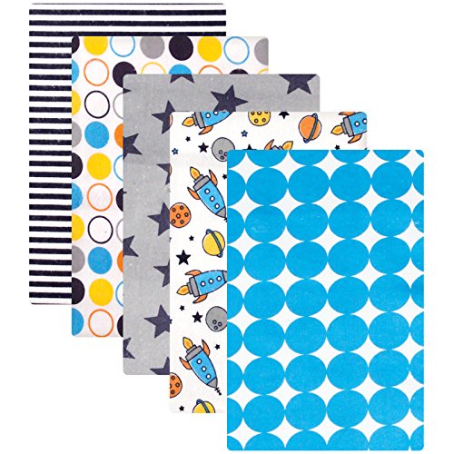 Luvable Friends Flannel Receiving Blankets, Rockets, 5 Count