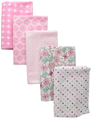 Luvable Friends Flannel Receiving Blankets, Flowers, 5 Count