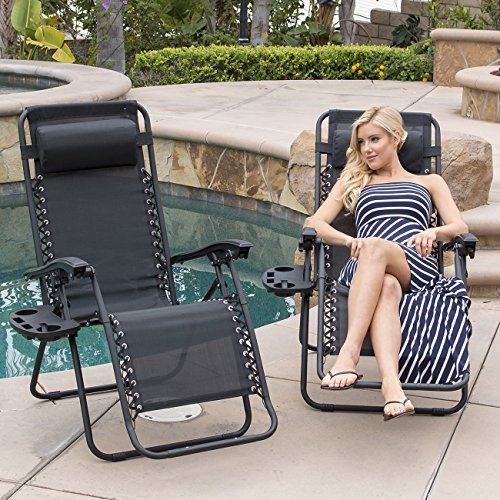 Belleze Set of (2PC) Zero Gravity Chair Lounge Chairs Pillow UV Recliner Chairs w/Cup Holder Tray, Black