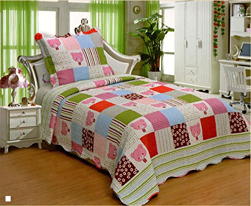 2pcs Kids' Boys & Girls Twin Size Reversible 100% Polyester Bedspread Quilt Coverlet & Sham