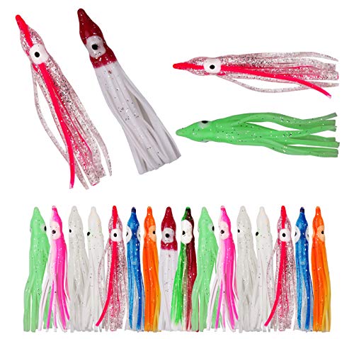JSHANMEI Fishing Lures Octopus Squid Skirt Bait Hoochie Trolling Soft Lure Set (3.5inch - 100pcs)