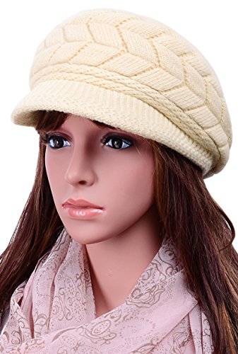 Odema Womens Knit Wool Hats with Visor Warm Skull Beanie Caps for Winter