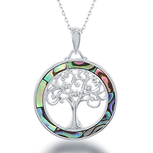Beaux Bijoux Sterling Silver and Gold Tone Created Blue Opal, MOP or Abalone 18" Tree of Life Pendant Necklace