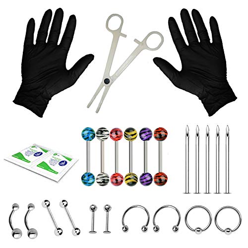 BodyJ4You 26PC PRO Body Piercing Kit Animal Print Tongue Nipple 14G Steel BCR CBR Belly Nose Lip