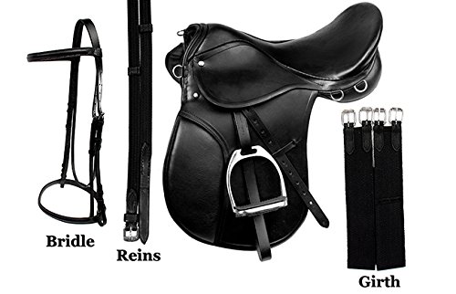 All Purpose Black Leather English Riding Horse Saddle Starter Kit