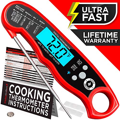 Alpha Grillers Instant Read Meat Thermometer for Grill and Cooking. Upgraded with Backlight and Waterproof Body. Best Ultra Fast Digital Kitchen Probe. Includes Internal BBQ Meat Temperature Guide