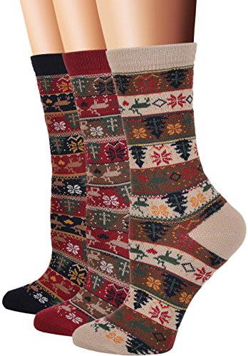 Flora&Fred Women's 3 Pair Pack Vintage Style Cotton Crew Socks
