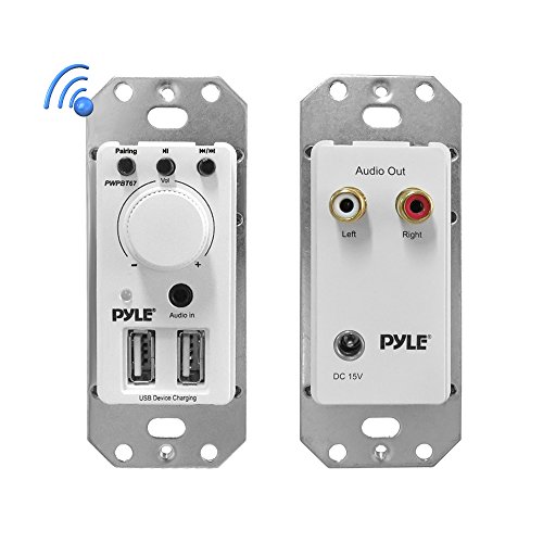Pyle Bluetooth Receiver Wall Mount - In-Wall Audio Control Receiver w/ Dual USB Charging Port, 3.5mm AUX Input for Sound Systems - For Home Theater Entertainment - Includes DC Power Adaptor - PWPBT67