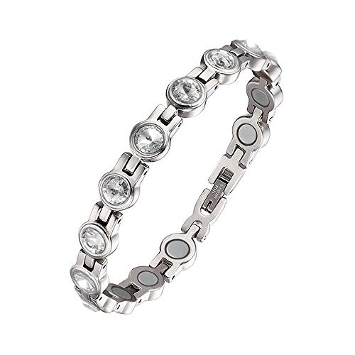 ProExl Womens Magnetic Bracelet with Swarovski Crystals Gift Box (Silver Clear)